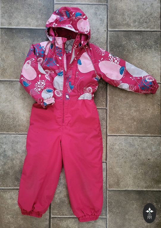 Žiemos kombinezonas, rekomenduojamas naudoti esant temperatūrai nuo 0 iki -20°C. Labai geros būklės, trūksta tik guminių kojų kilpų.