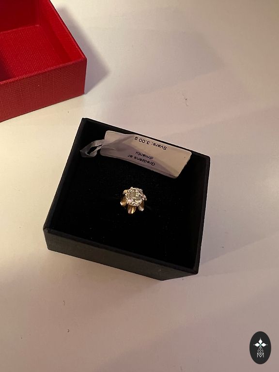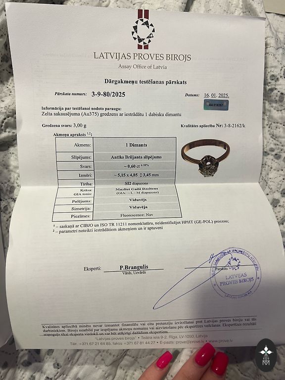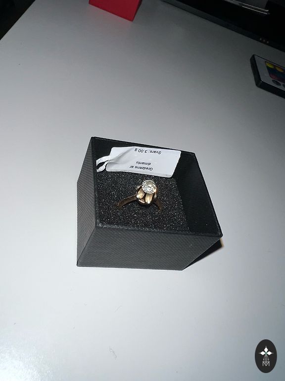 Žiedelis su dūminiu kvarcu ir briliantais. Dydis 16.2 Dėvėtas labai mažai, man šiek tiek per didelis.