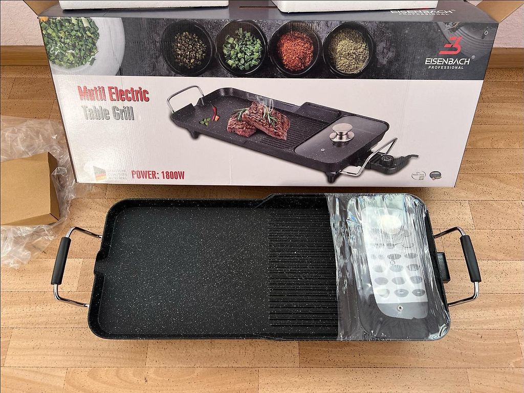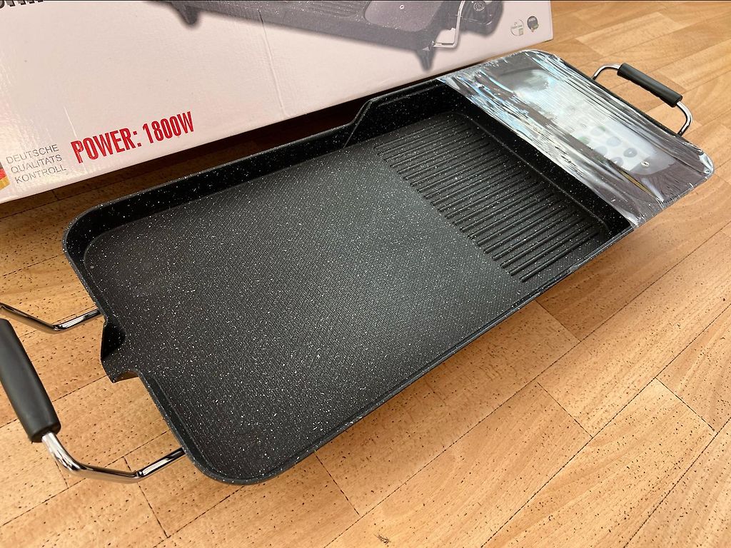 2 heating surfaces, temperature range 60-240 C, 180-minute timer with sound signal, width - 59 cm, depth - 35.5 cm, height - 4.8 cm.