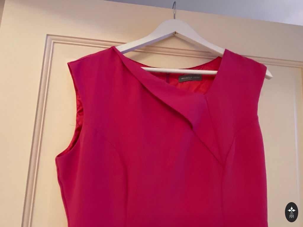 Suknelė, kuri nesiglamžo, užtrauktukas šone, diržas numatytas, bet nėra.