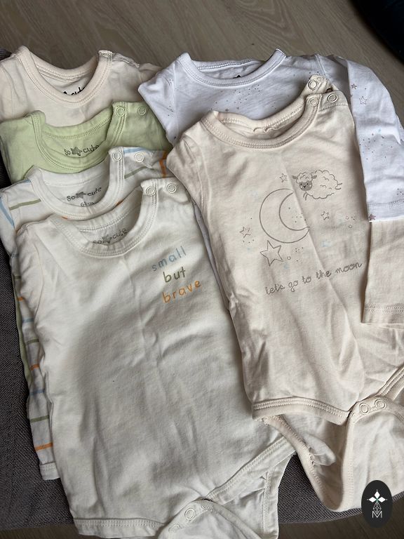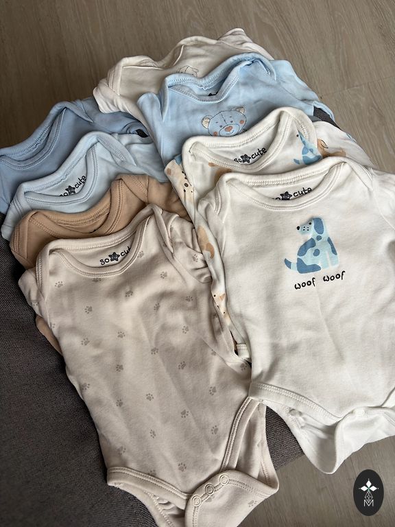 Kombekas on pärast ühte väikest last sõna otseses mõttes paar korda kantud, pehme ja ilus. Käed ja jalad on kokkuvolditavad, suurus märgitud 56. Ideaalne seisukord!
