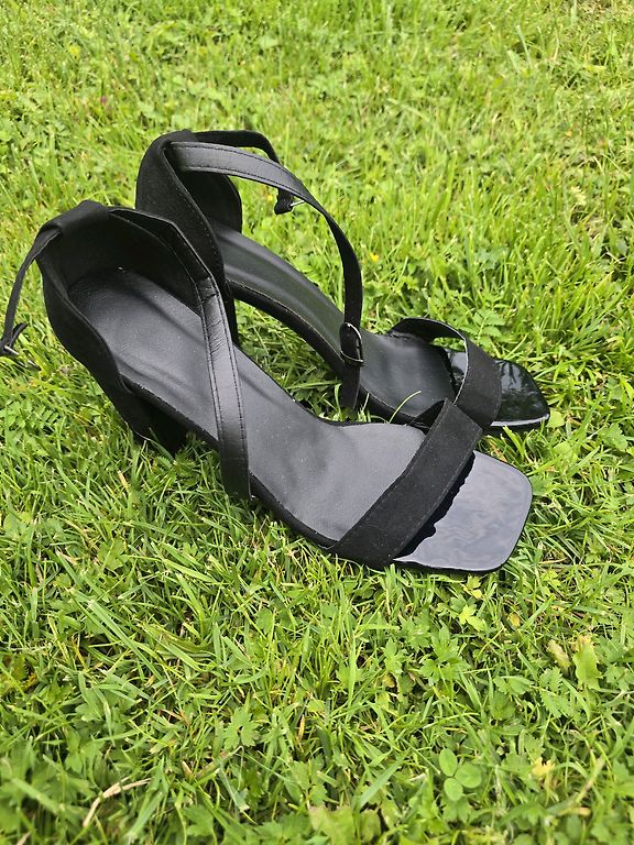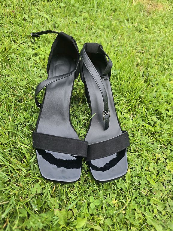 Совершенно новые и неиспользованные, с полной коробкой. У меня уже есть такая пара, и это одни из моих любимых, очень удобные и красивые, можно сочетать с множеством различных вариантов одежды. Сверкающие камушки придают изюминку классическим черным туфлям на высоком каблуке.