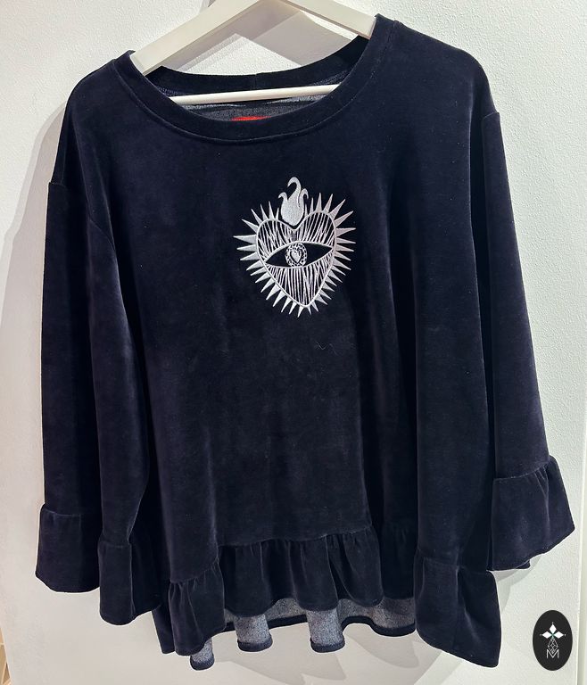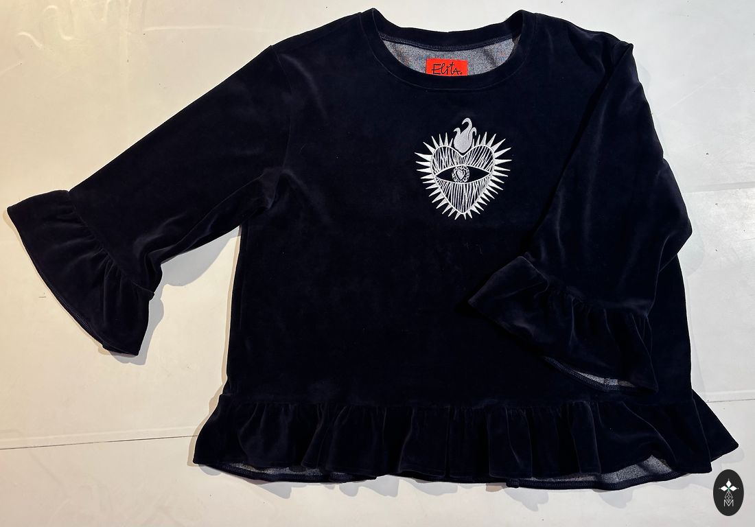 Blouse with black lace sleeves