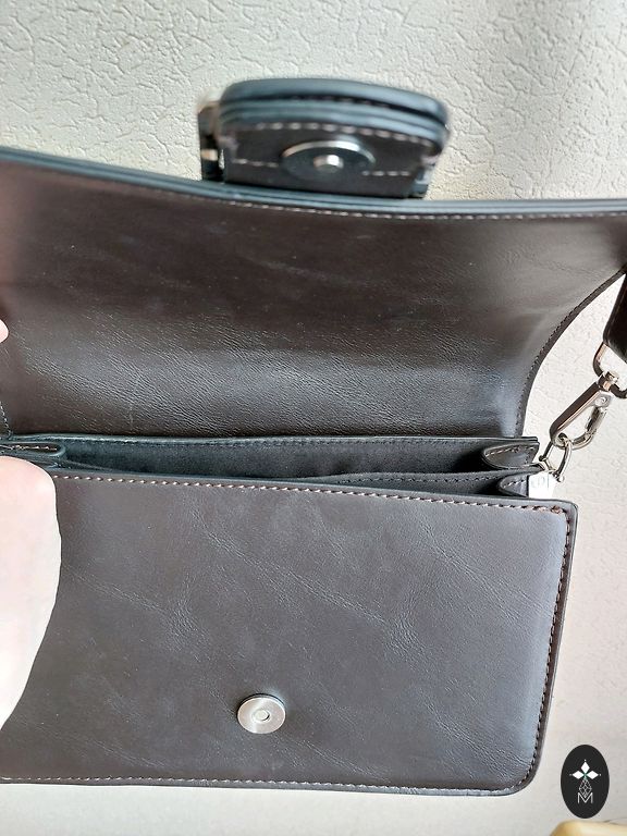Iš išorės vizualiai nėra odos defektų. Vidų išvaliau kiek galėjau, bet liko nedidelė dėmelė nuo kažko, galbūt galima išvalyti (žr. 2 nuotrauką), o pačios rankinės kraštai yra aptrinti (žr. kitas nuotraukas), bet galbūt galima pataisyti. Atiduosiu už simbolinę kainą, nes yra defektų.