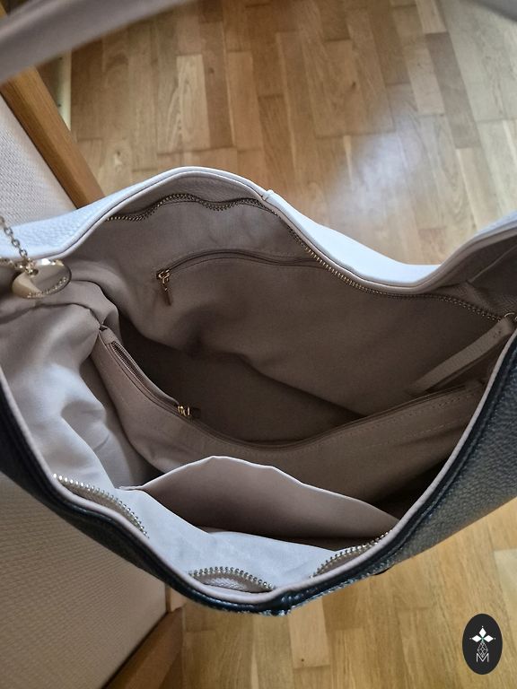 Natūralios odos rankinė. Naujos rankinės būklė, nes užsakant norėjau baltos, bet rankinė yra "beige" tono. Rankinės matmenys: 30cm×27cm×11cm