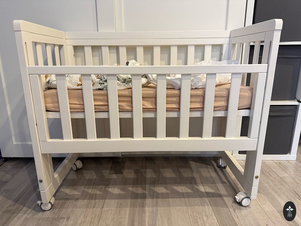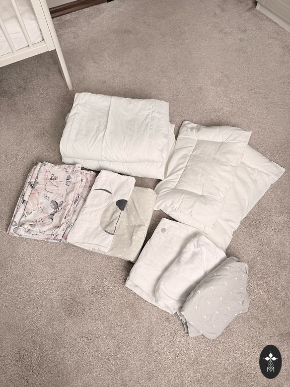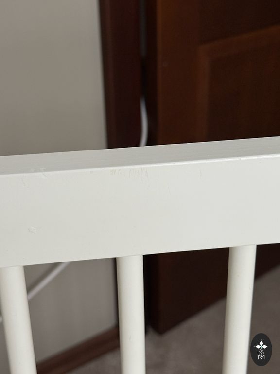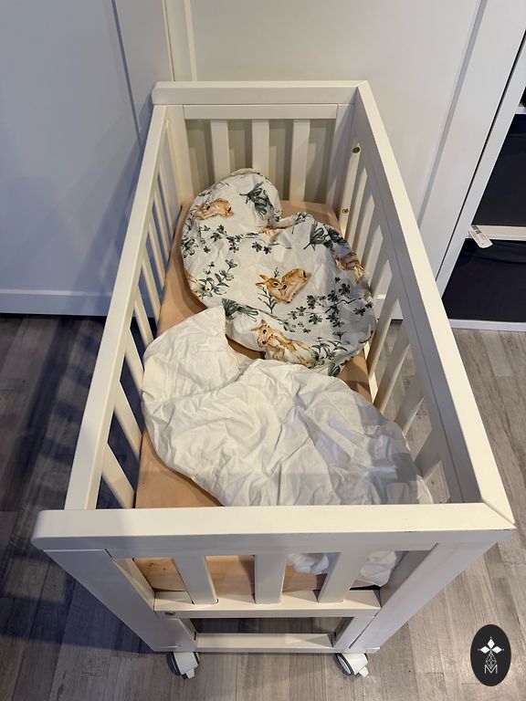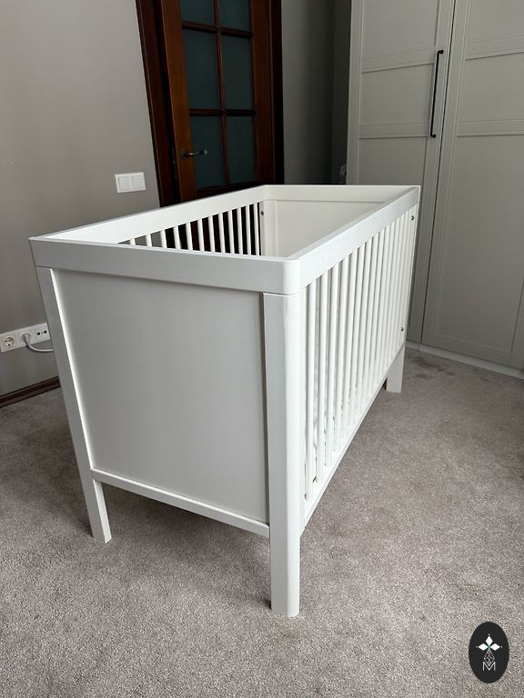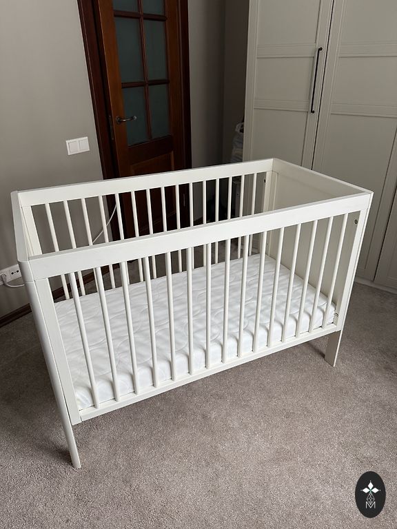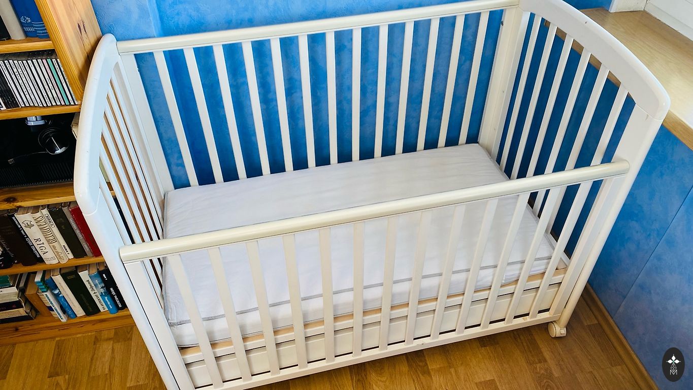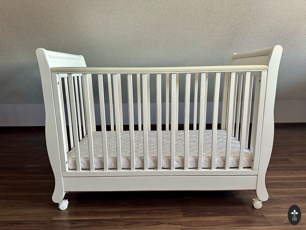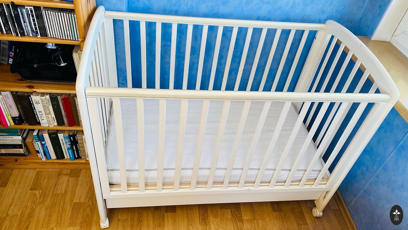 Pirktas čia Andelėje, bet nenaudotas. Iš pradžių buvo medžio spalvos, perdažytos baltai. Pridėsiu 3 paklodes.