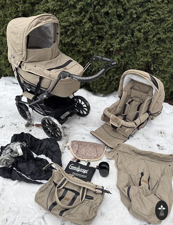 2in1 Emmaljunga duo edge. In excellent condition. Carrycot and seat unit, as well as the frame. The front tires can be locked. Very comfortable to use. Dark burgundy color. The removable fabric parts need to be washed, but there are no tears, etc. Delivery can be arranged within the Riga city center limits.