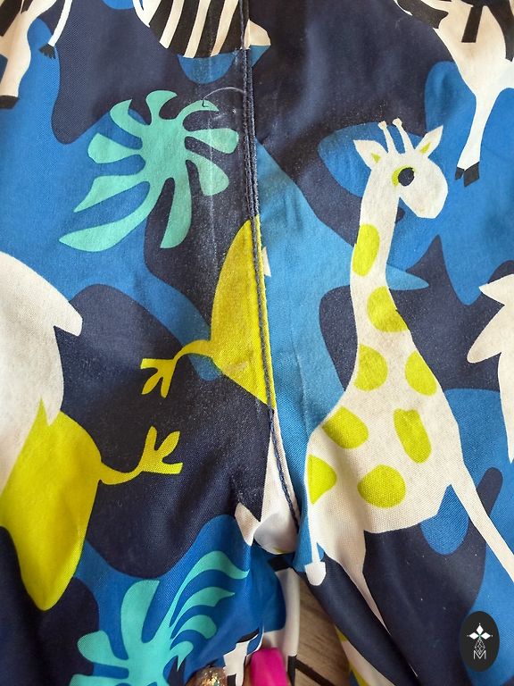 Kelnių apačia skubiai prisiūta, nes dukrai buvo šiek tiek per ilga, galiu ją atardyti.
