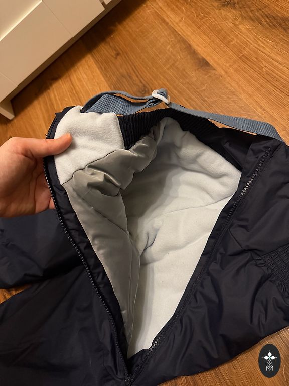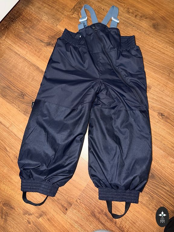Sniego kelnės 4 metų amžiaus vaikui, geros būklės, be plyšimų ar nusidėvėjimo. Pridedu 2 striukes. Columbia striukės rankovių galai yra šiek tiek nusidėvėję, bet naudojimui netrukdo. Kita striukė labai geros būklės.