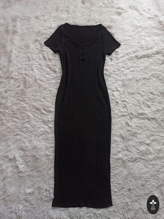 Облегающее, эластичное платье. Подойдет также для размера S. Красивый акцент и классические платья.
