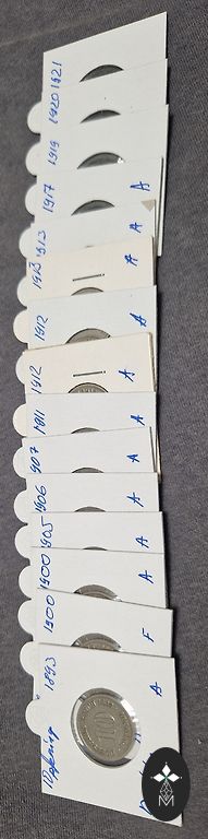 1876/1904/1905/1907/1908/1909/1912/1914/1915. Монеты были в обращении, поступали из разных мест и их состояние также различается. Не очищены, не терты и не полированы. Продаются все вместе, как единое целое. Омниву оплачивает покупатель!