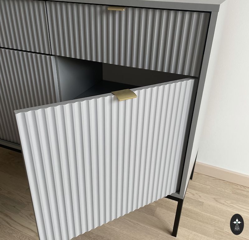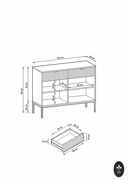 Matmenys: 79 (plotis) x37 (gylis) x42 (aukštis). Kojos: 25 cm.