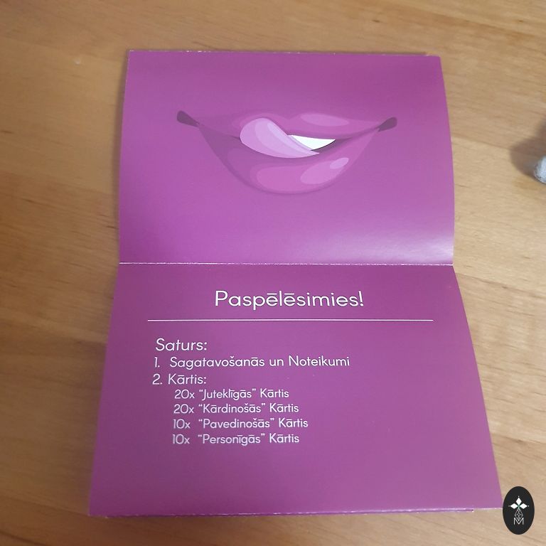 Visiškai naujas, nenaudotas Nerātnā spēle! Paskutiniame nuotraukoje matoma, kad šiek tiek įplėštas popierius, atidarant, bet kitų defektų nėra - pilnas komplektas.