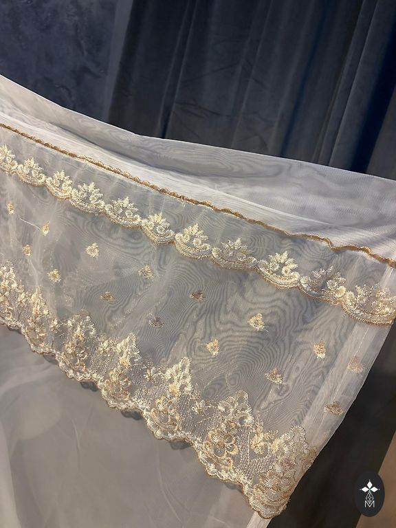 Размер каждого изделия 158*268 см. Выглядит стильно, ткань бежевого цвета с легким серебристым оттенком.