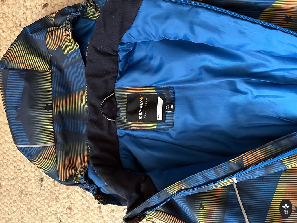 Naudotas kombinezonas 110 dydžio - komplekte kelnės, striukė niekas nesuplyšę, vienintelis defektas - pamestas originalus užtrauktuko galas, pakeistas, viskas veikia ir netrukdo dėvėti! Siunčiu.