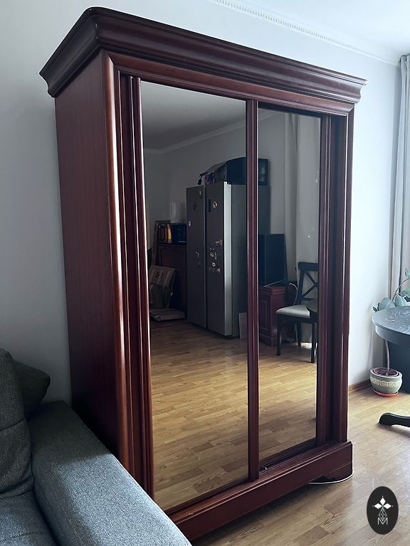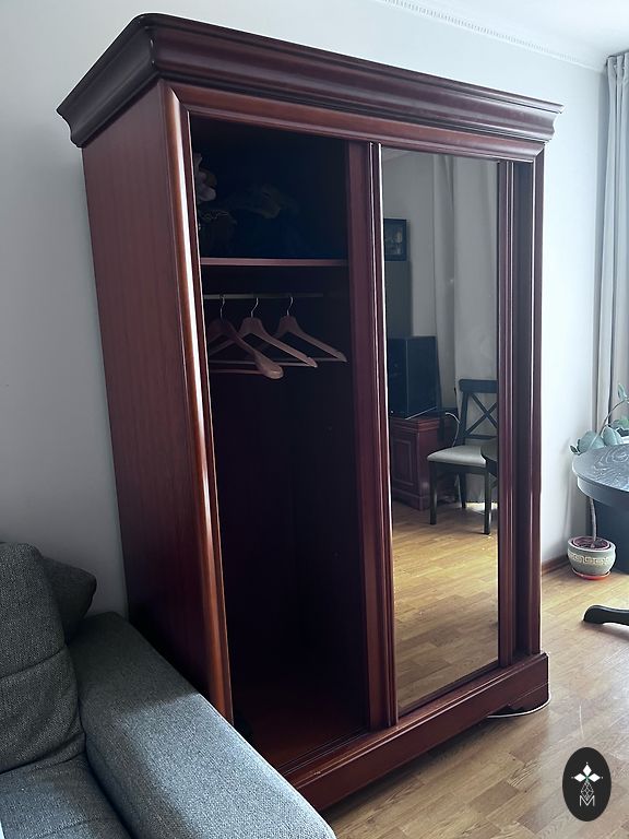 Masinė medžio spinta geros būklės su laiko paliktais ženklais, kuriuos galima išsaugoti arba atkurti. Aukštis 165 cm, plotis 80 cm, gylis 40 cm. Keturi lentynos. Yra Rygoje, Ziepniekkalne. Apžiūra turi būti suderinta iš anksto.