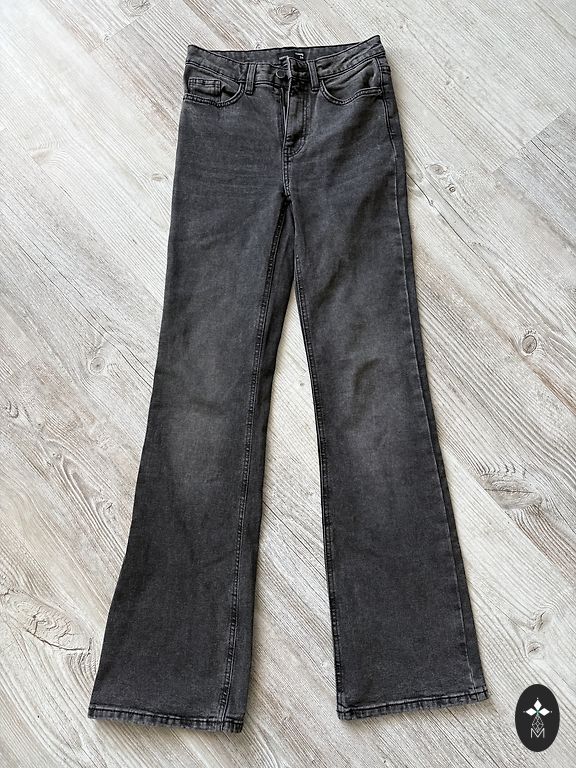 Джинсы с эластаном размера S. Термолеггинсы размера M/L, но я бы сказал, что они соответствуют размеру XS/S.