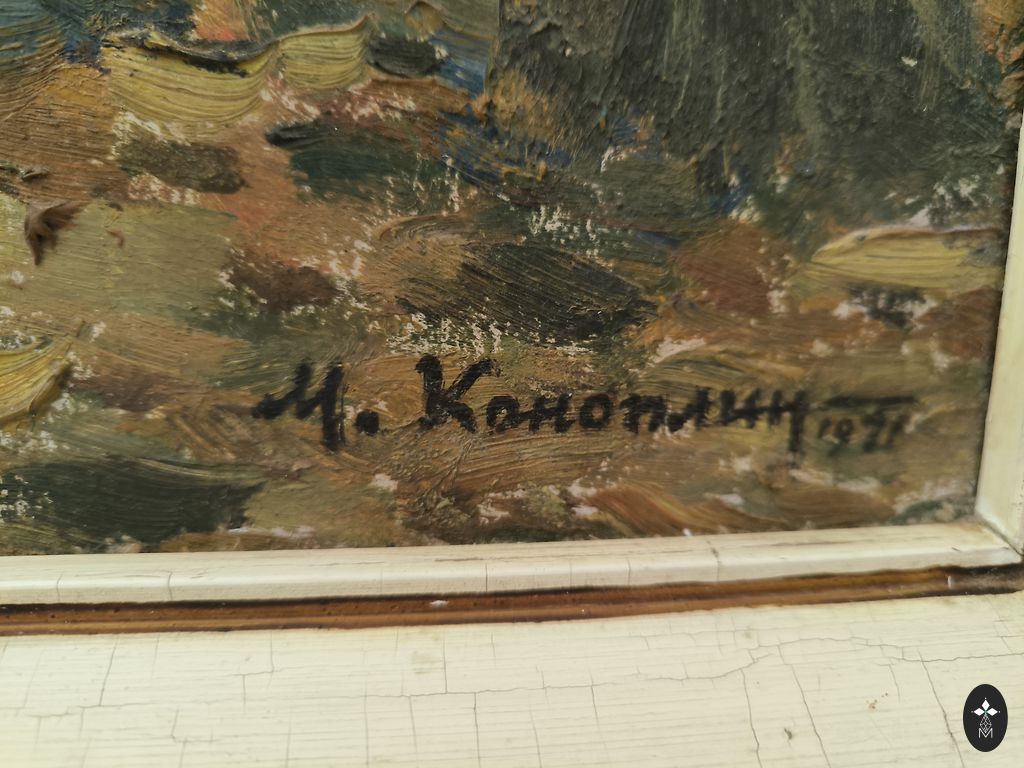 Автор неизвестен. Кажется, написано масляными красками. Картонная основа. Размеры картины: 52X45,3 см.