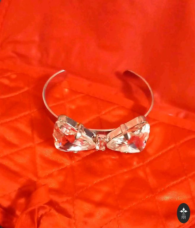 Vintažinis segtukas 1980. Segtukas aukso tonas su kristalo akmenėliais. Ilgis 5 cm, plotis 2,5 cm.