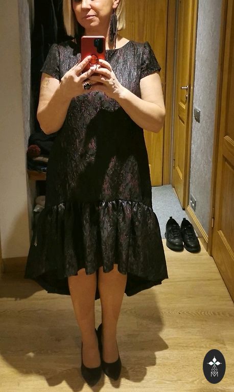 Size L, wrap-type top, side zipper on the skirt part. Fits size 40/42. Length approximately 135cm. The top is loose, suitable for those with larger busts. Worn once. In perfect condition.