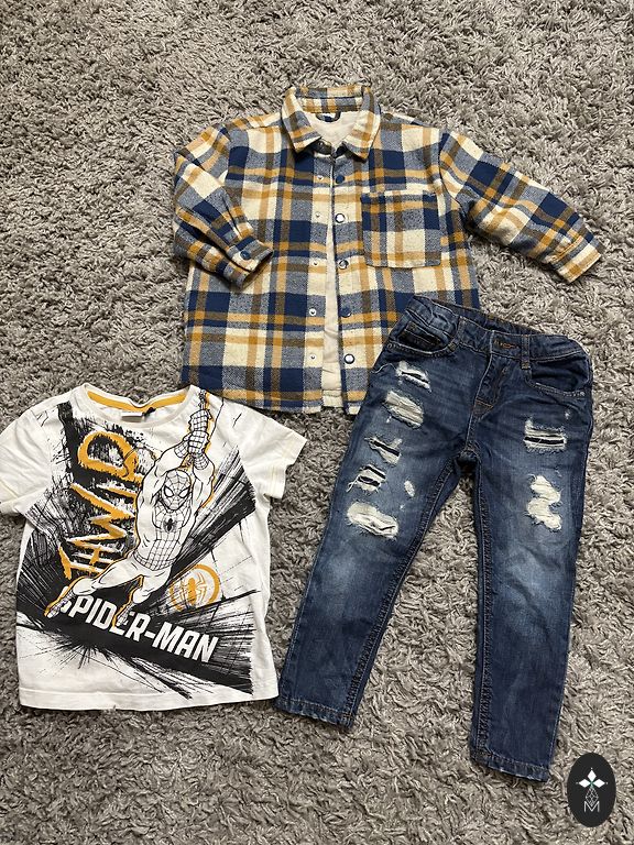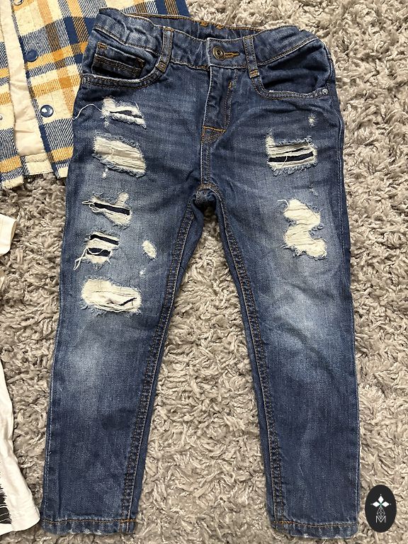 Very gently worn. If there is any flaw, it might be just a thread coming loose. The pants may show slight signs of use at the knees. The shirt, black jeans, and shoes were worn twice for formal occasions.