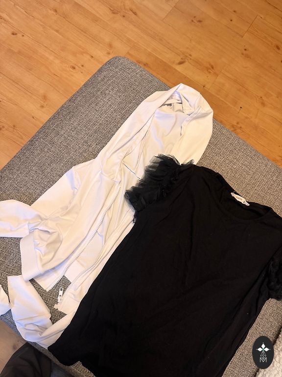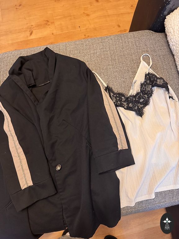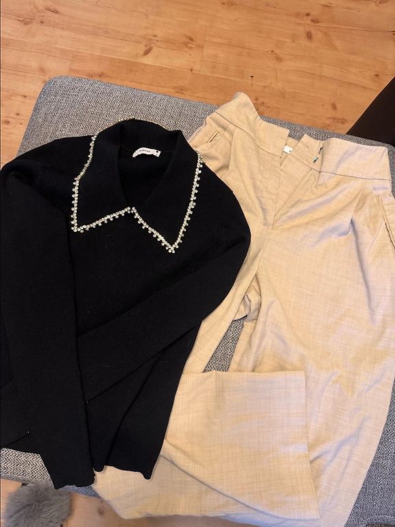 Rezervuotas S dydžio megztinis ir M dydžio striukė. Geros būklės, esminių defektų nėra. Išparduodu spintą, kaina už abu 😊