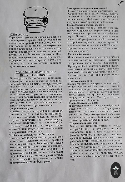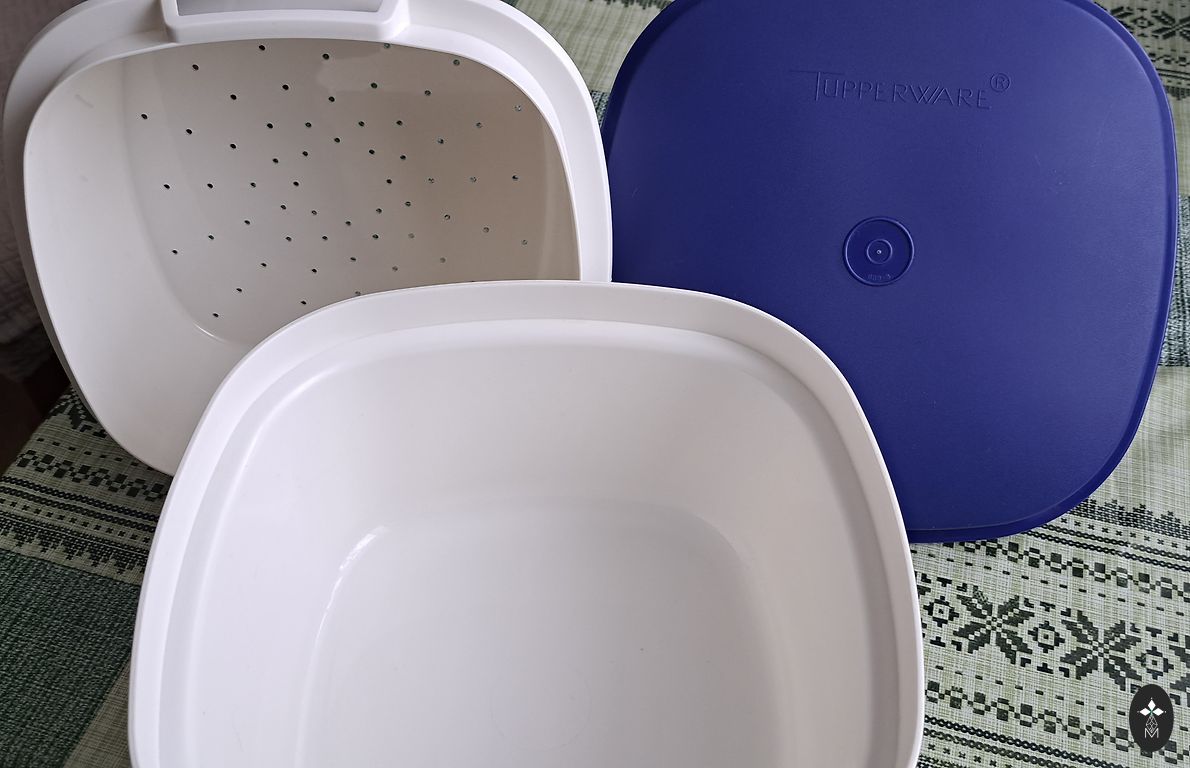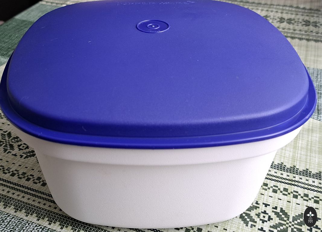 Ļoti ērts un parocīgs trauks, kurā var salikt dažādus produktus, kad kaut kur jāpārvietojas. Ietilpīgi nodalījumi fiksējas ar iekšējo vāku un viss noslēdzas ar ārējo vāku ar fiksatoriem. Augstums- 8 cm, diametrs - 33 cm.