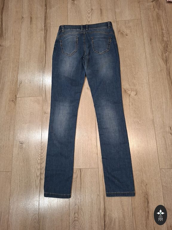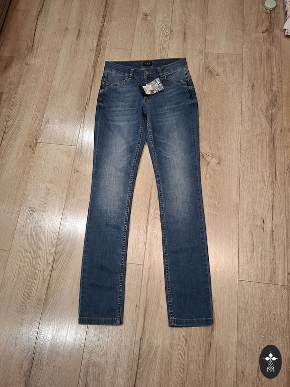 The tag indicates size 14. New with tag. High-waisted, flared at the bottom. Waist 41x2, hips 49x2, outer seam 106 cm, inner seam 74 cm.