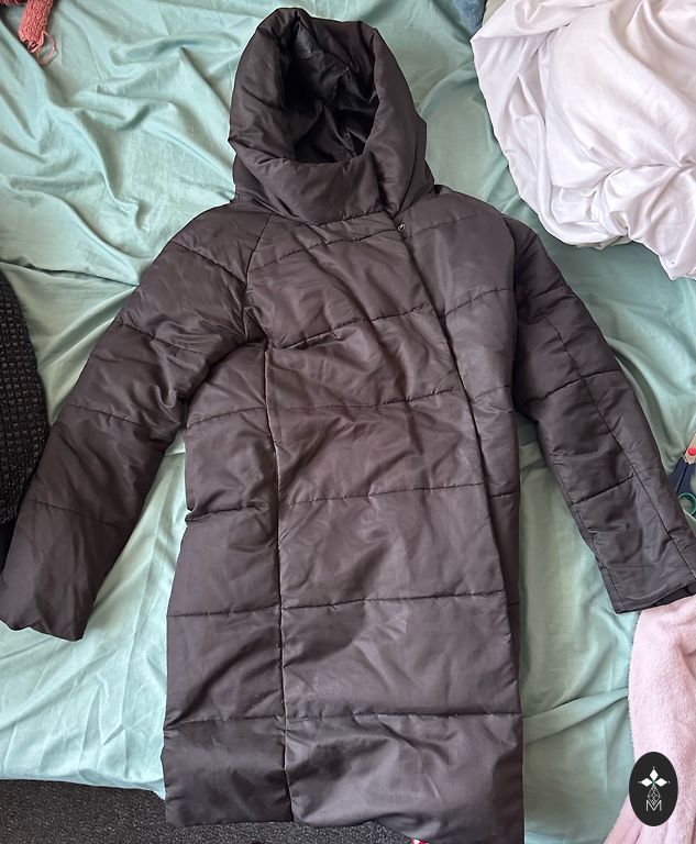 Kaip naujas, tik išbandytas, absoliučiai be jokių defektų su dideliu kapišonu, talpiomis šoninėmis kišenėmis, labai šiltas. Tiks XS, S, net M dydžiui. Man, deja, per platus ir net ilgas, todėl nesiskirčiau nuo šios gražios striukės, šiems orams tiesiog idealus.