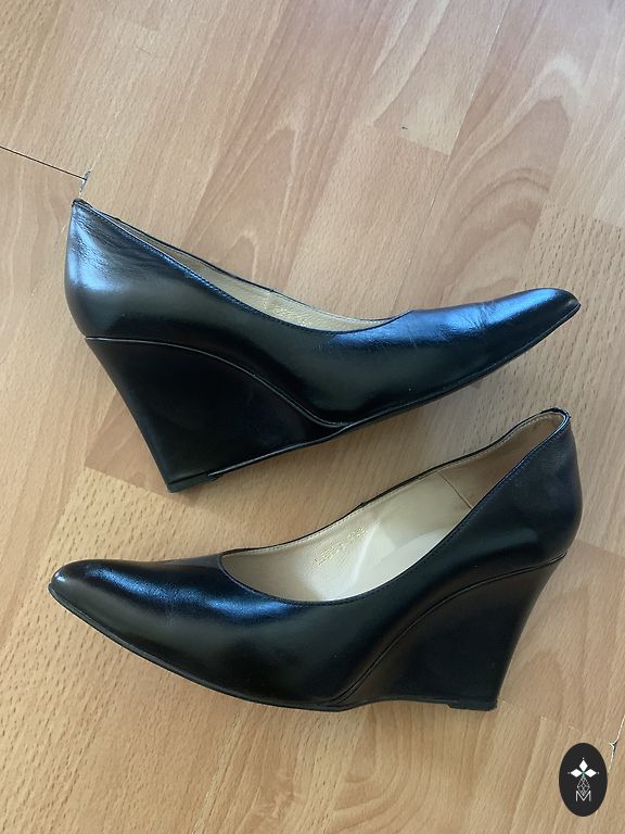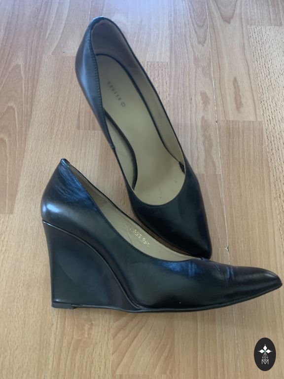 Очень красивые, классические черные туфли на высоком каблуке, мягкая подошва, надевала всего два раза, мне немного малы!