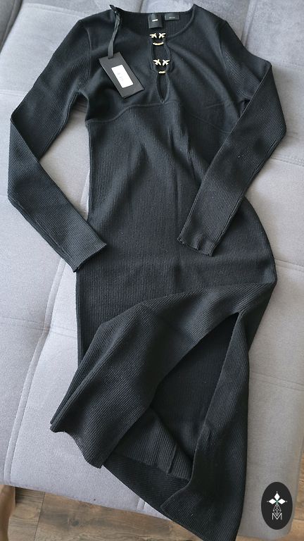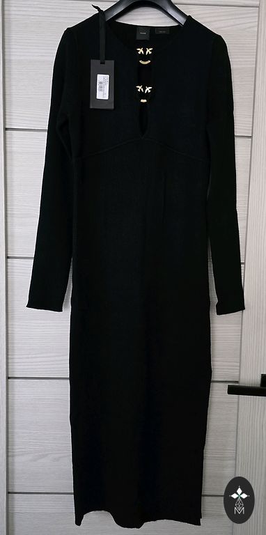 Suknelė moterims, juoda, ilgis 121 cm, krūtinė 78-105 cm, liemuo 78-90 cm, klubai 94-110 cm.