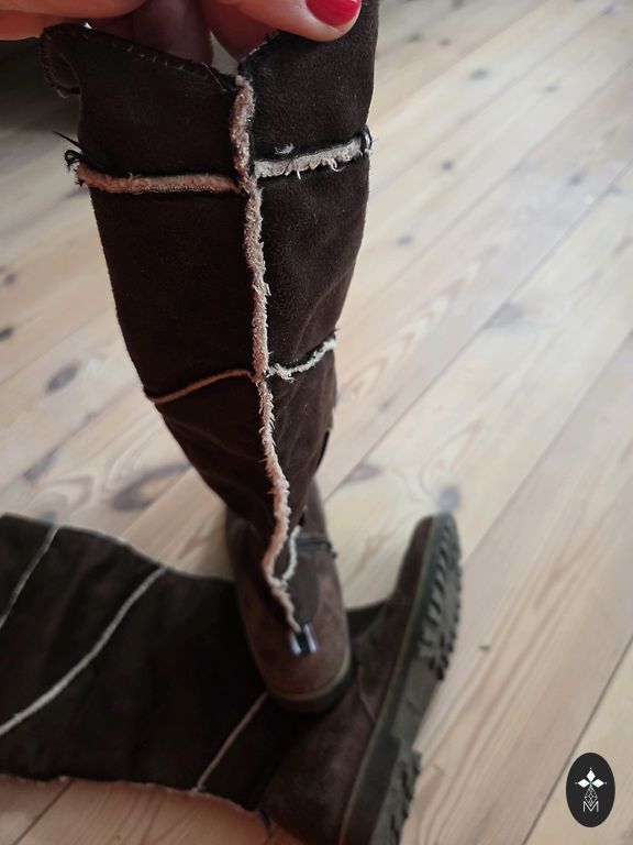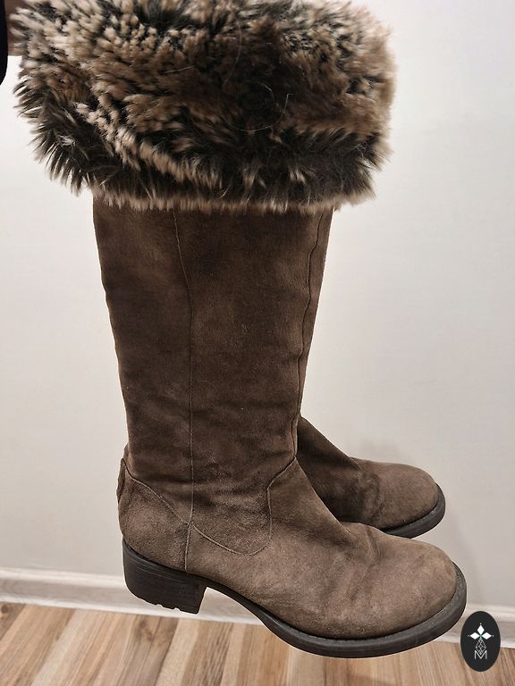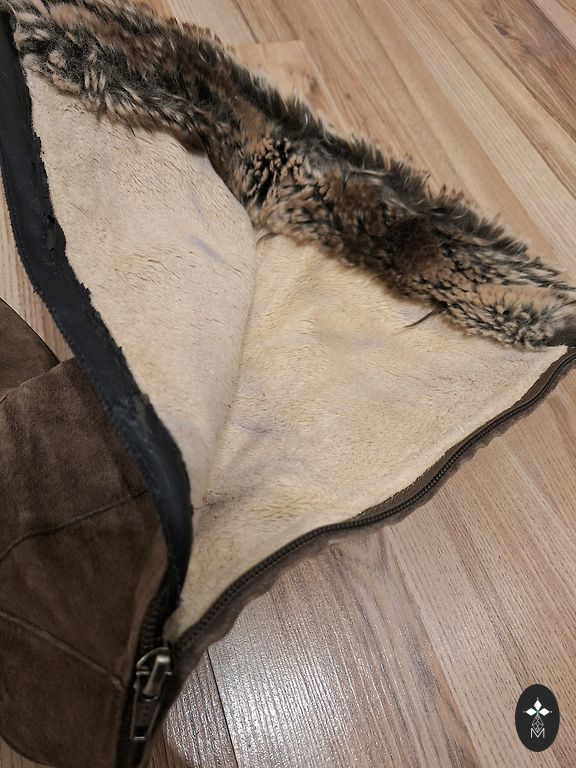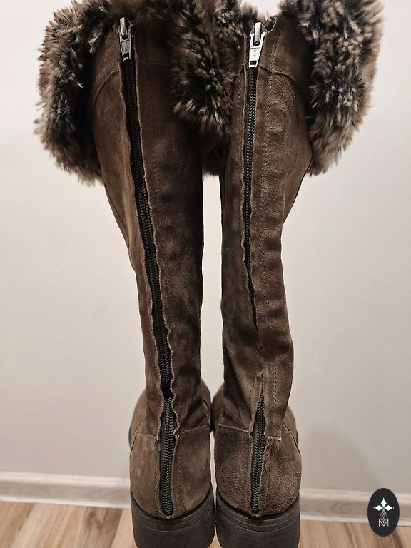 PRADA Velūra zābaki ar ādas oderi un defektu.