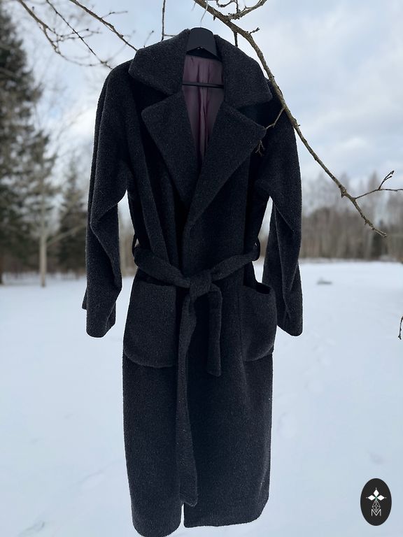 Sudėtis: 72% vilna, 20% mohera, 8% nailonas. Šilkinis viskozės pamušalas. Dydis: S/M.