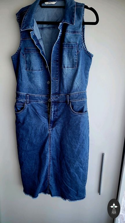 Džinsinis suknelė su kišenėmis. 38 dydis. Ilgis 97 cm. Laisvas kirpimas. Gražiai atrodo kartu su kokiu nors odiniu dirželiu.