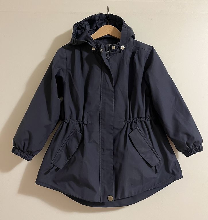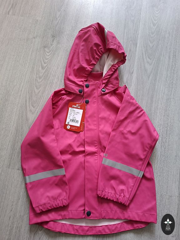 Roku galos gumijas. Kapuce noņemama. Trūkums pastiepta gumija apakšā kur sakniedē. Krāsa rozā ar haki.