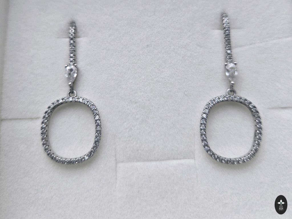 Sidabriniai auskarai su pilkais akmenimis. 925 praba