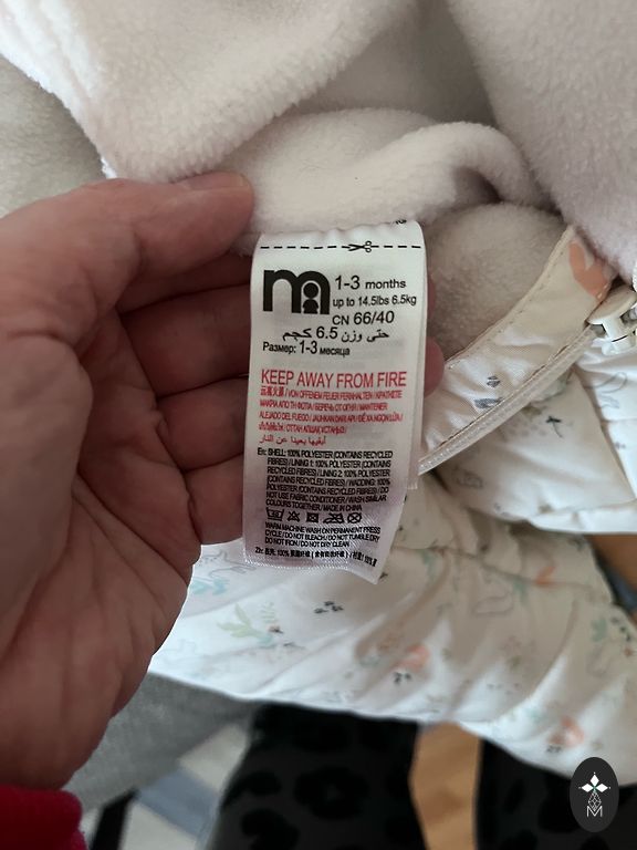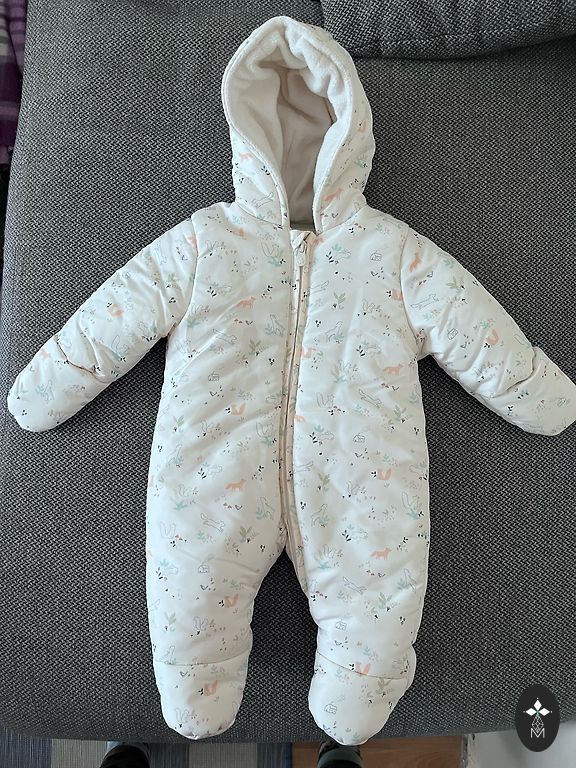 Размер 62. Бежевый с елочками и розовым утеплителем. После одного ребенка, в отличном состоянии.