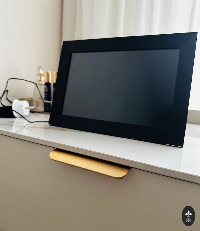Juodas pusmėnulio formos sapnų gaudytojas su perlais.