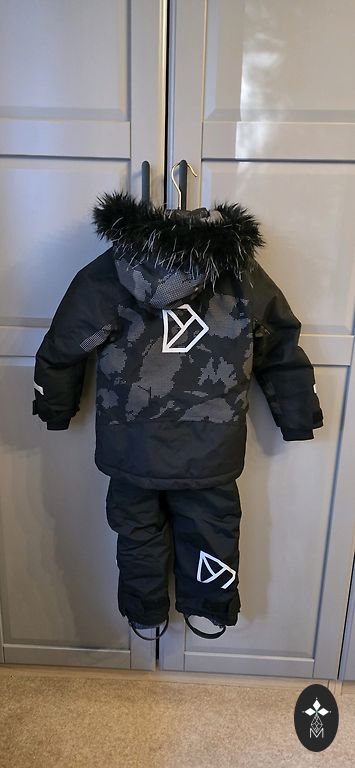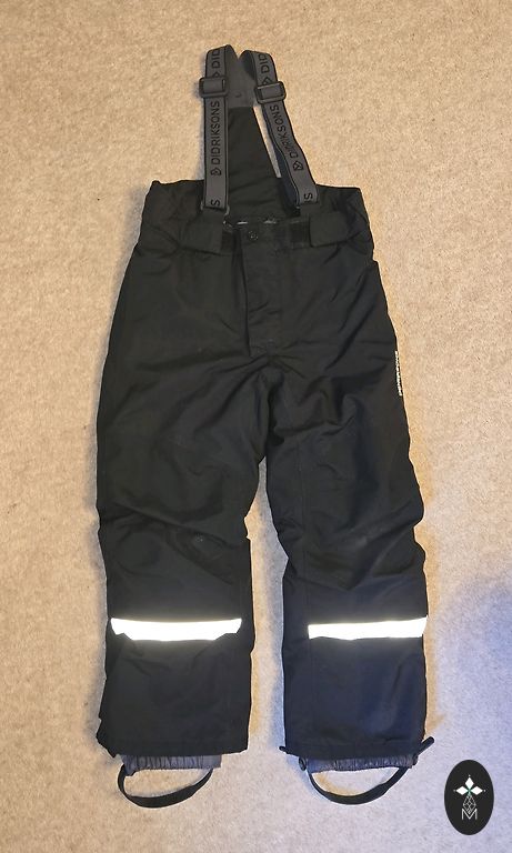 Aukštos kelnės, bendras ilgis 80 cm, vidinė siūlė 50 cm. Striukės ilgis 51 cm. Dėvėjo vienas vaikas, bet kelis sezonus. Trūkumai: vietomis nusidėvėjusi, bet ne matomose vietose. Funkcionaliai - trūksta gumos, kuri dedama ant batų. Jas galima įsigyti ir pridėti, jei yra noras. Galiu susitikti Avotu - Marijos rajone, centre. Aprašymas:
