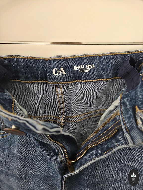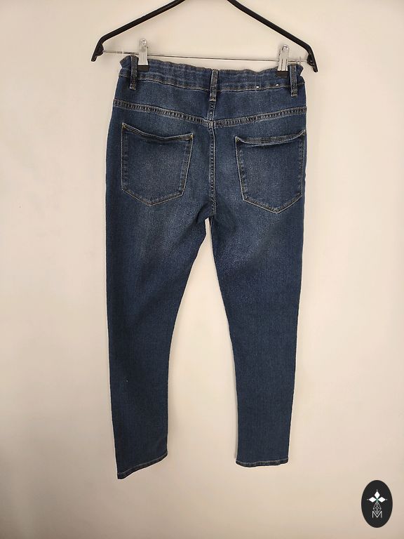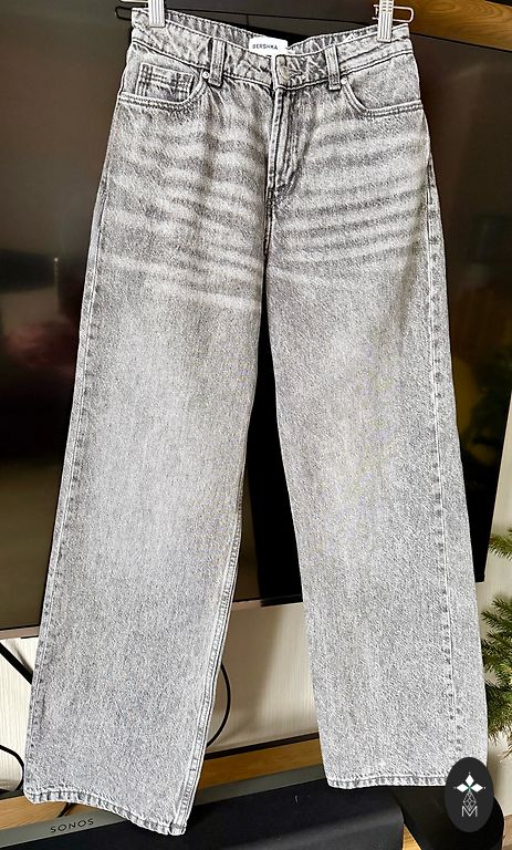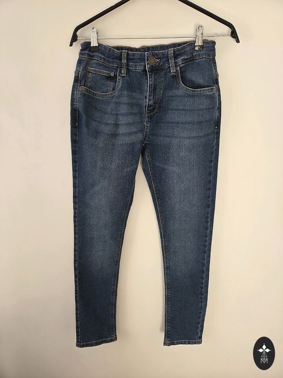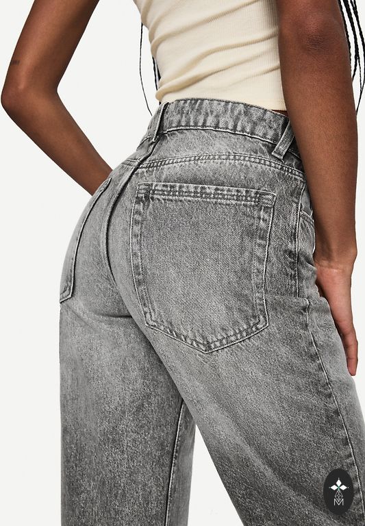 Высокая талия, классический синий оттенок "washed / mid-blue". Ткань — 100% хлопковый