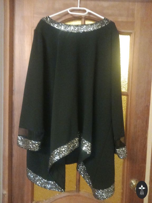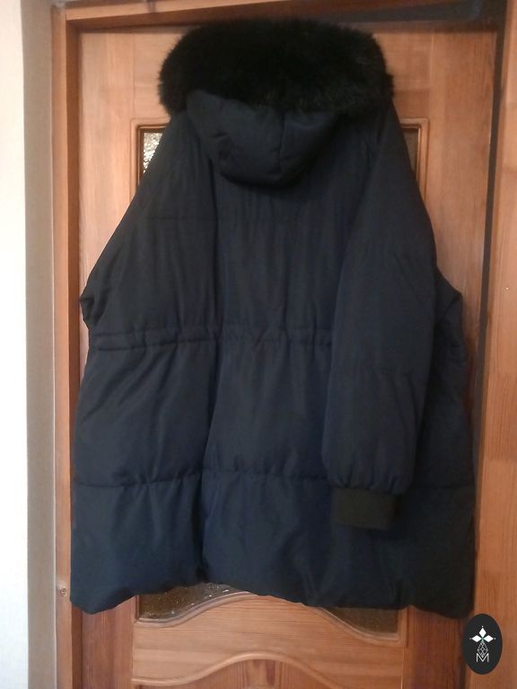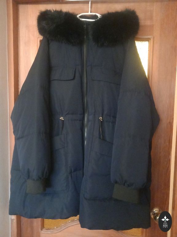 24/26 US Gyvenime atrodo mėlynai žalia. Pečiai 50cm, rankos 65cm, krūtinė 66cm, juosmuo 56cm (ant gumos), klubai 100cm, ilgis 127cm. Siuntimo išlaidas apmoka pirkėjas.