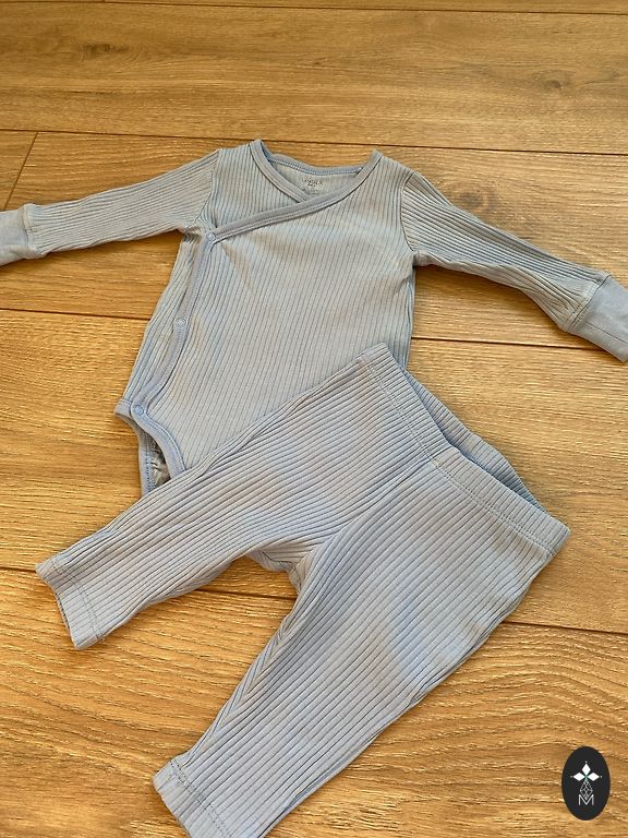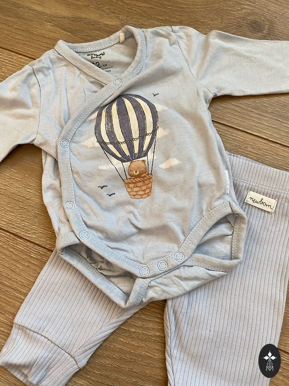 Gražus komplektas kūdikiui su meškučio galvos motyvu. Geriausiai tiks 56 dydžiui.