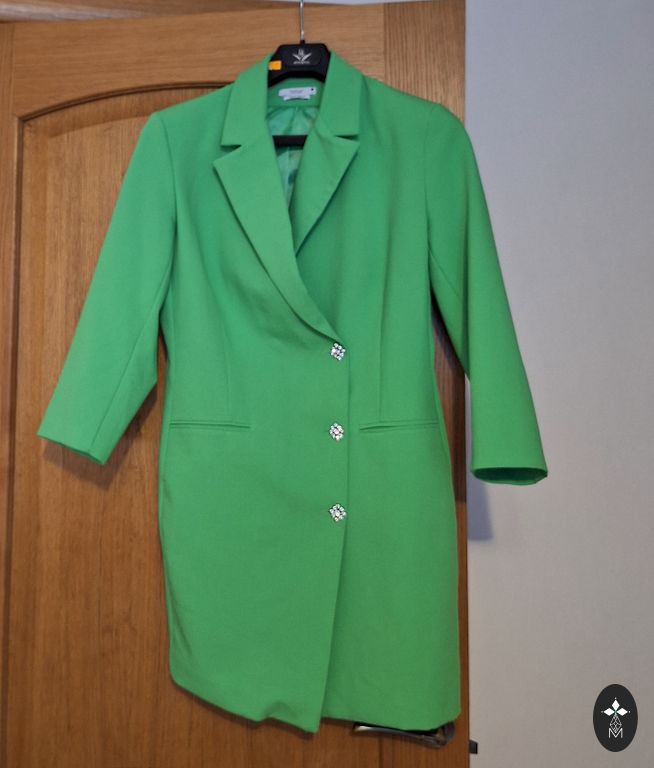 Sportliku stiiliga jakk, mis sobib nii kontorisse kui ka igapäevasteks jalutuskäikudeks. Kingituseks annan kollase kleidi.