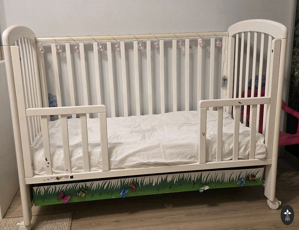 Trolis Torsten kūdikio lovelė, nuotraukoje matyti, kur buvo perdažyta, nes buvo nusilupę dažai, jei labai norite, rekomenduoju viską perdažyti! Šiai lovelėi galima atskirai nusipirkti mažylio kraštą! Lova neturi vienos krašto, yra išpjauti lentjuosčiai, kad būtų galima naudoti cosleeping variantą, nes negalėjo nuimti taip, kad būtų šalia lovos, bet tą vietą galima atsukti ir įdėti mažylio amžiui skirtą kraštą! Lovelė kartu su dormeo sienos labai mažai naudotu čiužiniu, kietas, patogus ir tinkamas kūdikiui! Lovelę atiduodu, čiužinys 20 eurų! (mokestis tik už čiužinį!)