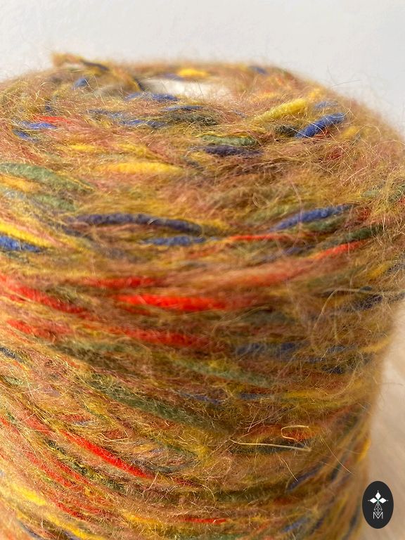 Merino vilna 50% moheris 30% lureksas ir poliamidas. Apie 380-400m/100g. Jei reikia, galima gauti dar 200g. Gamintojo šalis Italija. Galima megzti tiek megztinius, tiek liemenes.