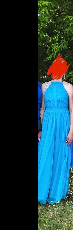 Vakarėlio suknelė su įdomiomis petnešomis.