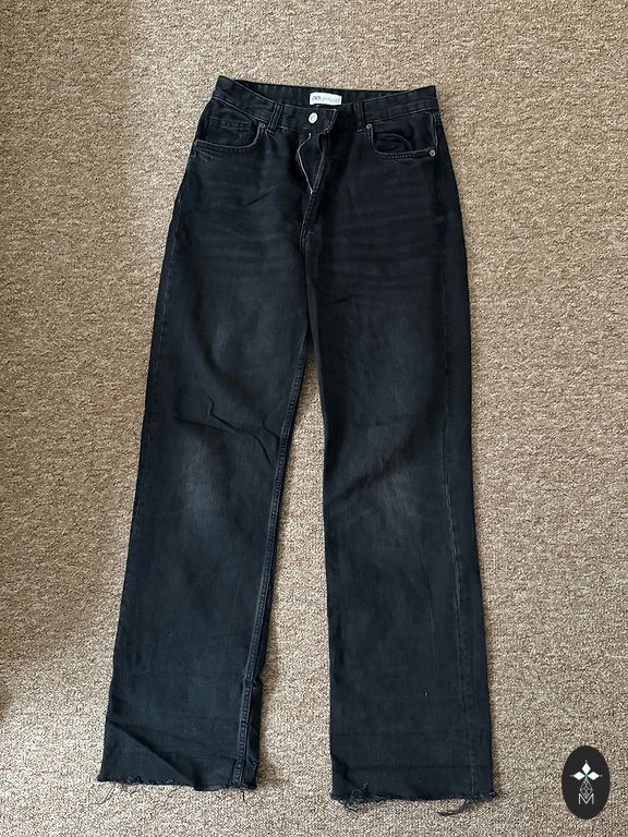 Kelnių ilgis 102 cm. Liemens 75 cm. Kelis kartus dėvėtos. 32 dydis, kojų plotis 27•2