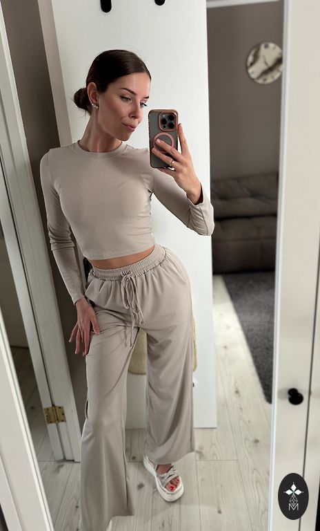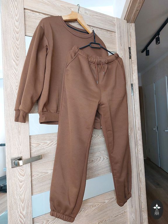 New, warm, knitted suit with beautiful embroidery and embedded stones.