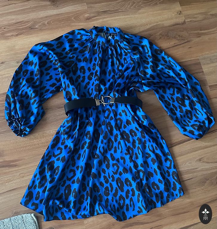 Ladies who are waiting for summer or preparing for warm lands might like this dress in sea tones. A combination of linen and cotton fabrics. The light blue linen fabric features original designs in screen printing. The fabrics are not thin - the dress can be worn with a jacket or cardigan even on cooler days. For warm days, a sleeveless top - bust up to 114 centimeters, the dress is widened from the bust down, with a full flounce at the bottom measuring 4 meters. The dress is mid-length - 117 cm. The pearl is practically new - tidied up and waiting for its pearl hunter.