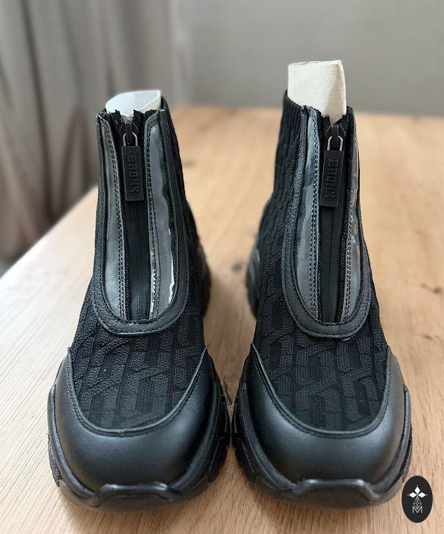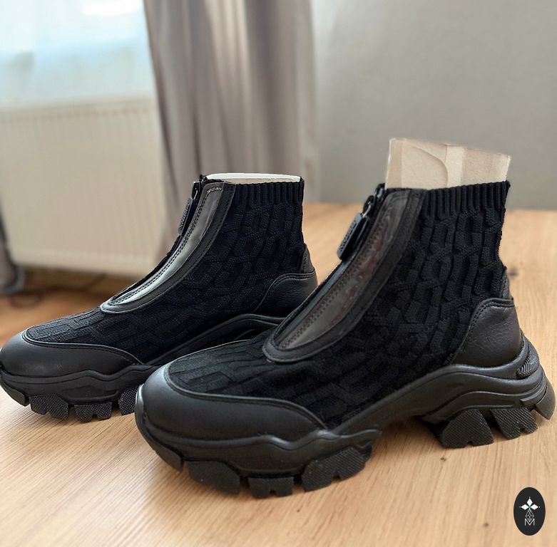 High-heeled ankle boots made from elastic, rubberized fabric. Available in black and beige colors. Heel height 11.5 cm. Completely new.